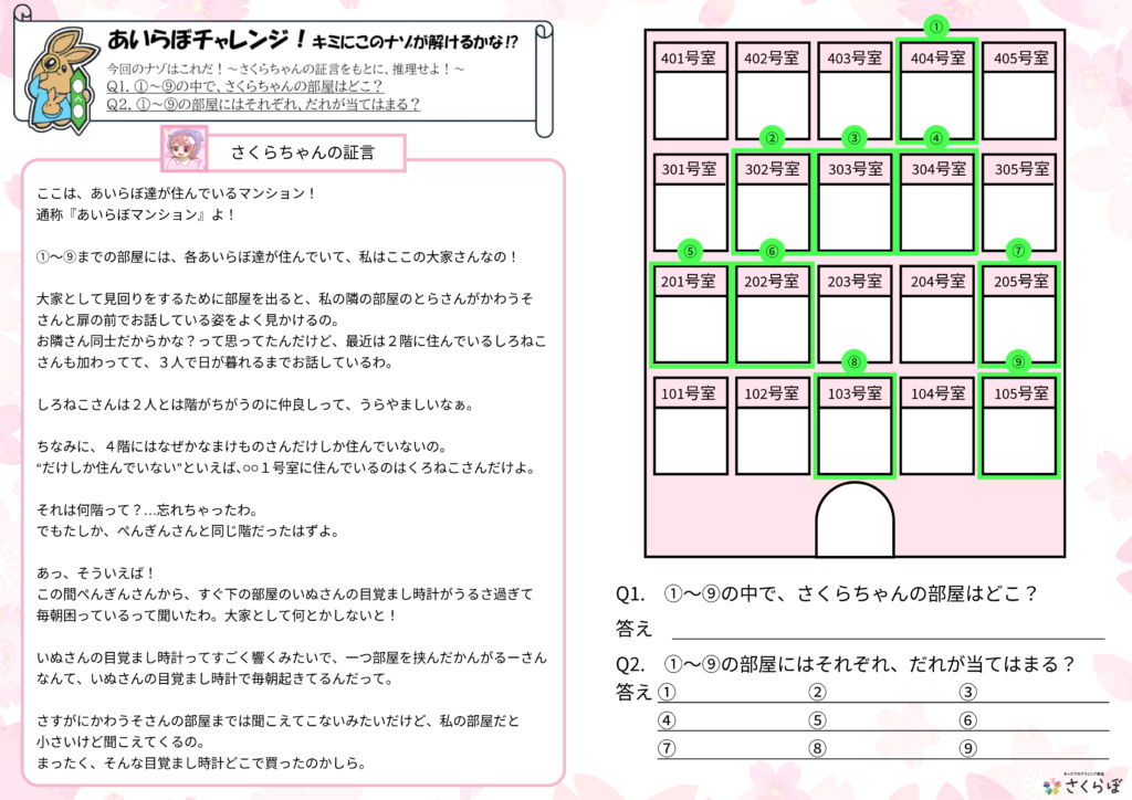 クイズQ.さくらぼオリジナルキャラクター「さくらちゃん」の証言を元に、みんなの部屋を推理せよ!🔍