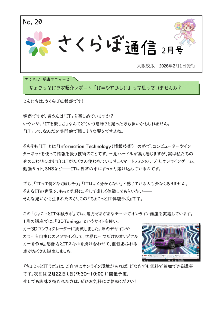 2024年7月より、月初に配信していた『さくらぼ通信』を紙面にして発刊しております。