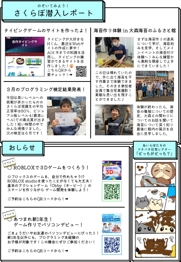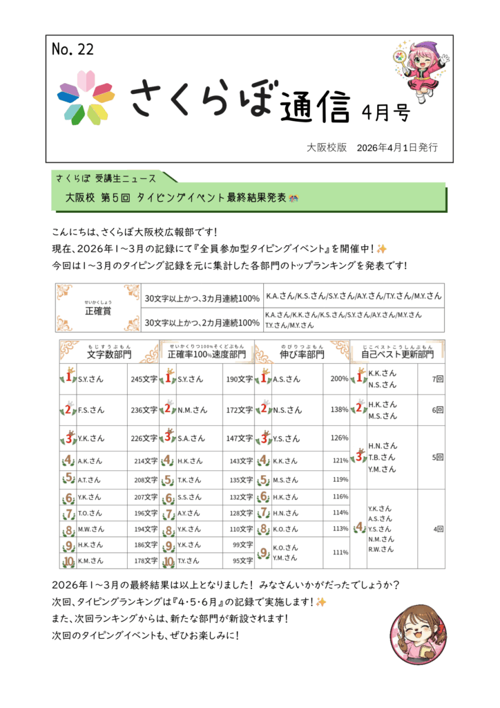 3月号から、東京校のさくらぼ通信がリニューアル!