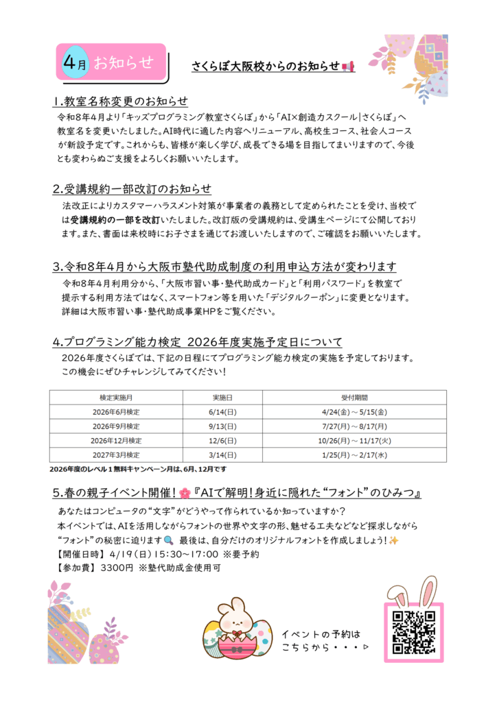 2024年7月より、月初に配信していた『さくらぼ通信』を紙面にして発刊しております。