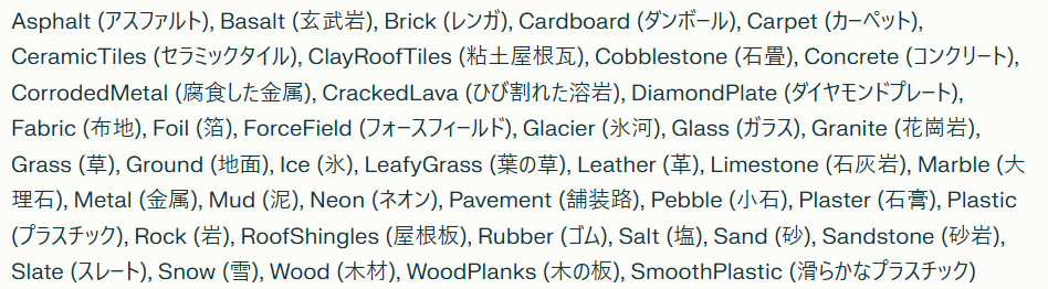 マテリアル:pt.Material = Enum.Material.Wood
