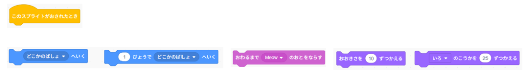 ②ミッション2:「このスプライトがおされたとき」をかえて、どんなことができるかしらべよう!